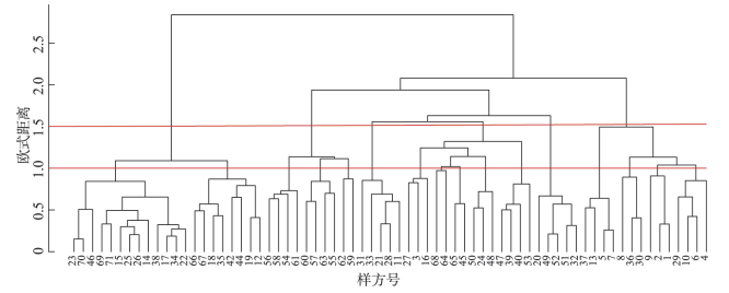 运用 Ward最小方差聚类法,对东秦巴山地南北样带上乔木植物群落进行聚类分析。