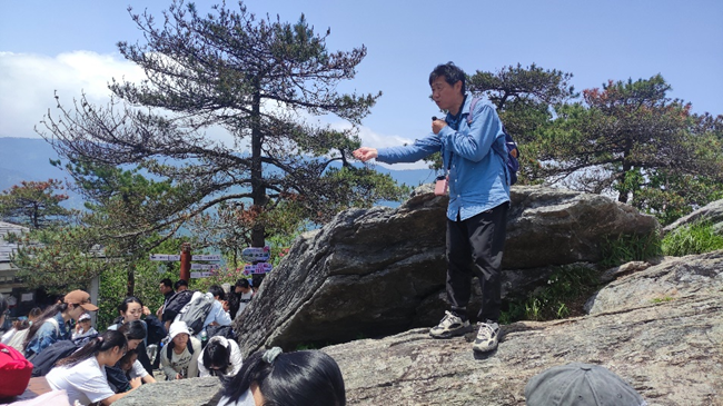 黄昆副教授在五老峰指导员工进行野外岩性识别和产状测量
