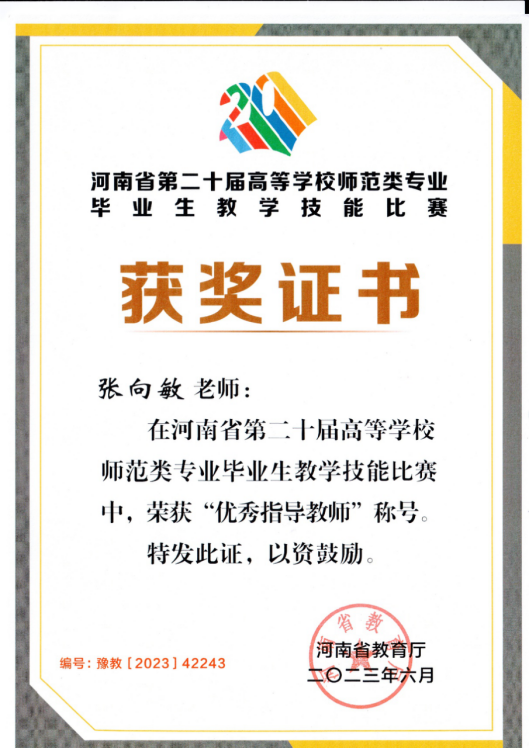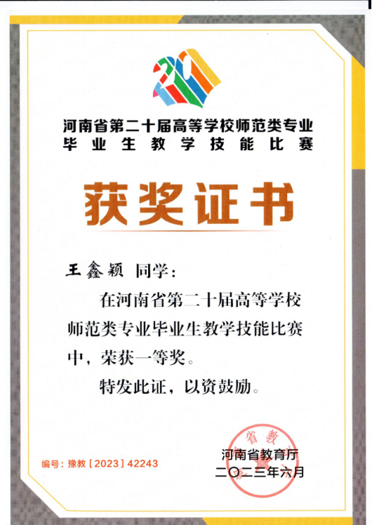 近日,河南省第二十届高等学校师范类专业毕业生教学技能比赛结果揭晓。公司2019级地理科学专业员工王鑫颖荣获一等奖,代淳、张盼盼荣获三等奖,张向敏老师荣获指导教师奖。