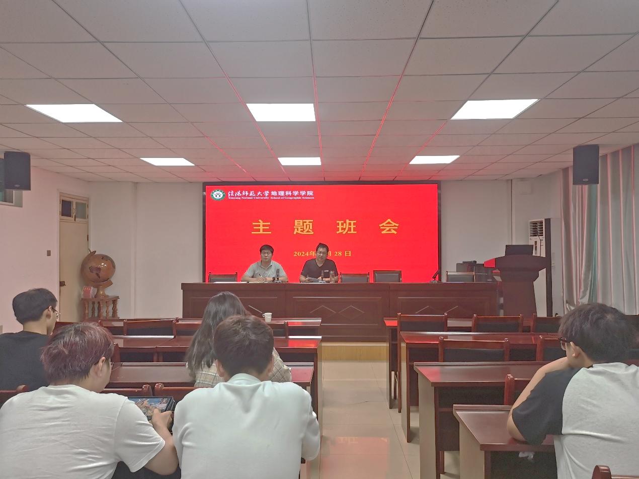 会议伊始,闫军辉老师详细解读了2023级学科地理和资源与环境专业的毕业论文开题截止时间、组织形式及相关注意事项,并讲解了2022级地理学毕业论文的中期要求和时间安排。接着,闫老师介绍了2023级学科地理和资源与环境专业同学的实习时间、形式及安全事宜。随后,何伟纯老师强调研究生暑假留校期间的安全注意事项,包括个人安全、宿舍和自习室用电安全,以及防范诈骗和避免晚归或不归。何老师提醒研究生们要关注自身心理健康,遇到压力时应及时与导师、班主任或同学沟通。最后,闫老师对研究生提出以下要求,一是,假期是研究生集中进行科研并取得成果的重要时间段,每位研究生均需要有明确的规划;二是,明确导师在工作和生活中的指导作用,与导师保持充分交流;三是,暑假在校学习、外出实习期间,一定要注意安全,特别是实习中要保持谨慎,友善待人。