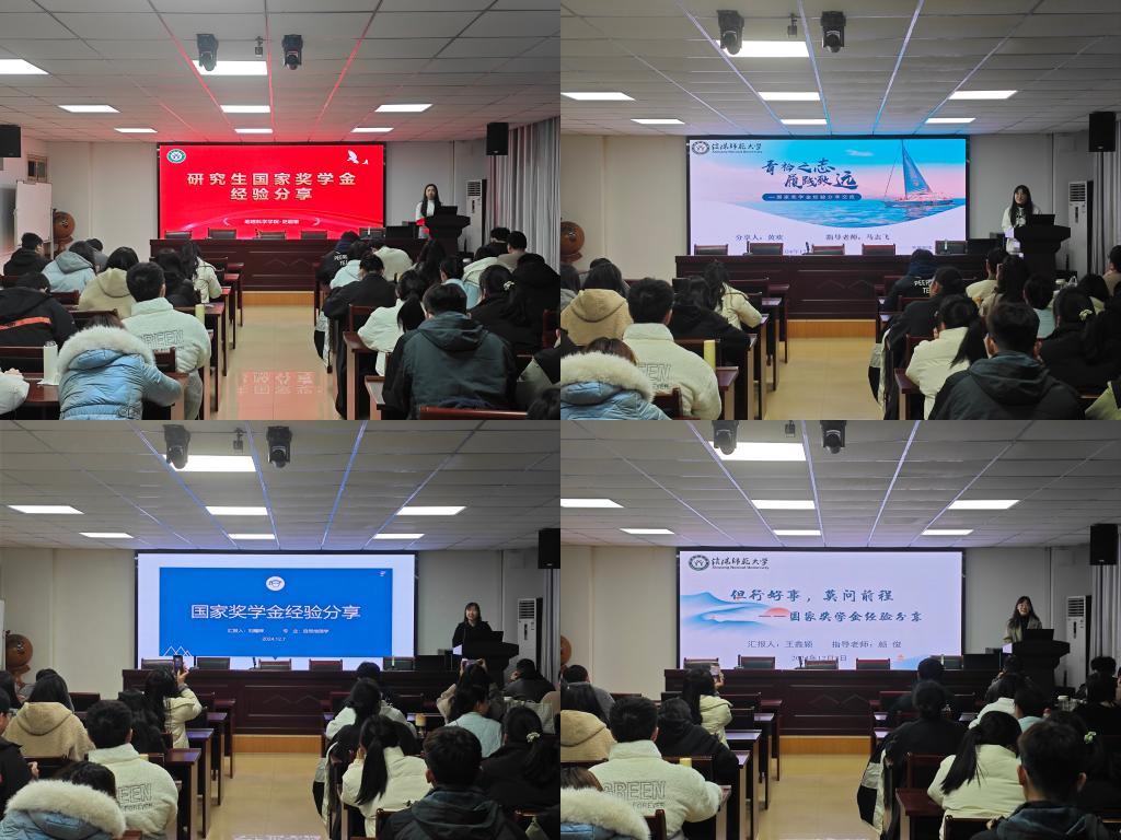 为充分发挥优秀学子的榜样力量,搭建高效学习交流平台,2024年12月7日公司于理科楼南楼410会议室举办2024年研究生国家奖学金经验分享会。邀请公司2024年的四位国家奖学金获得者—史超格、黄欢、刘瞳晖和王鑫颖分享经验,学院研究生60余人参加了分享会,分享会由研究生会刘瀚同学主持。