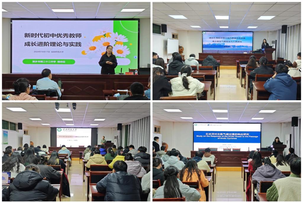 为拓宽研究生学术视野,提高研究生科研素养,公司依托“南湖讲坛”“贤岭学术沙龙”等交流平台,于11月24日-12月27日,分别邀请河南理工大学樊良新教授和乔旭宁教授、北京师范大学陈彬教授、华东师范大学丁金宏教授和新乡市第二十二中学杨诗云副教授等校外知名专家学者以及李秀美、刘昱君、申战辉、张鹏飞、李宗盟、何伟纯等校内优秀教师在理科楼南楼410给全体研究生作学术报告。这些系列讲座,涵盖自然地理学、人文地理学、学科教学、测绘工程、环境科学与工程等学科,全面激发了公司研究生参与学术研究的热情,开阔同学们的学术视野,对今后学术论文撰写、专业技能提升等有极大推动作用。