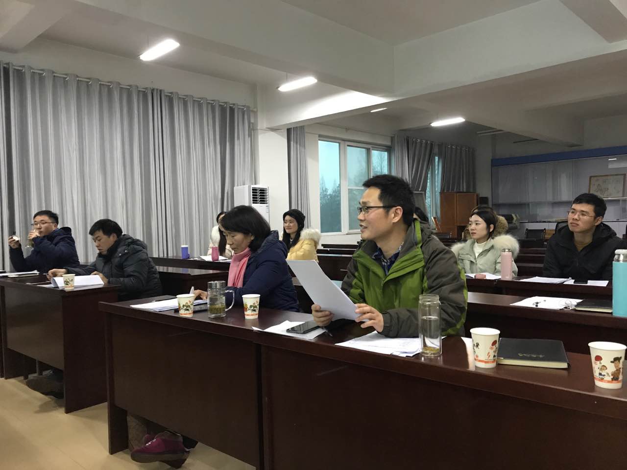 会议伊始,研究生工作秘书闫军辉博士首先介绍了此次中期考核的基本情况。本次中期考核共有15名硕士研究生参加。其中2016级硕师计划2人,2017级课程与教学论(地理)1人,2018级学科教学·地理12人。考核分2个小组进行,刘明华教授、王义民教授、高军波教授、张兴国副教授、徐丰副教授、赵国永副教授、潘晓芳博士、史兴俊博士、严育通博士、闫军辉博士等10名导师担任了评审专家。每位研究生按照抽签顺序,以PPT形式向导师组详细介绍了毕业论文的主要研究内容及进度、已经完成的工作、论文主要创新点和疑难点以及后期的进度安排。通过聆听每位硕士研究生的开题报告,评审老师们从论文研究内容、论文的逻辑结构等方面与同学们进行了深入的探讨交流,给予了非常全面及专业的指导,并提出了针对性的问题和意见。通过此次中期考核,同学们对论文的撰写思路和存在的问题有了更加清晰的认识,为后期的论文撰写打下了坚实的基础。最后,副经理王义民教授做了总结。王经理首先对各位导师认真负责的态度表示感谢,导师们切实将习主席的“四有好老师”落到了实处。王经理指出,每位同学毕业论文的进度、质量和工作量存在差异,希望同学们以此次中期考核为契机,积极主动的与导师沟通交流,思想上重视、行动上落实,为自己的硕士学业画上圆满的句号。