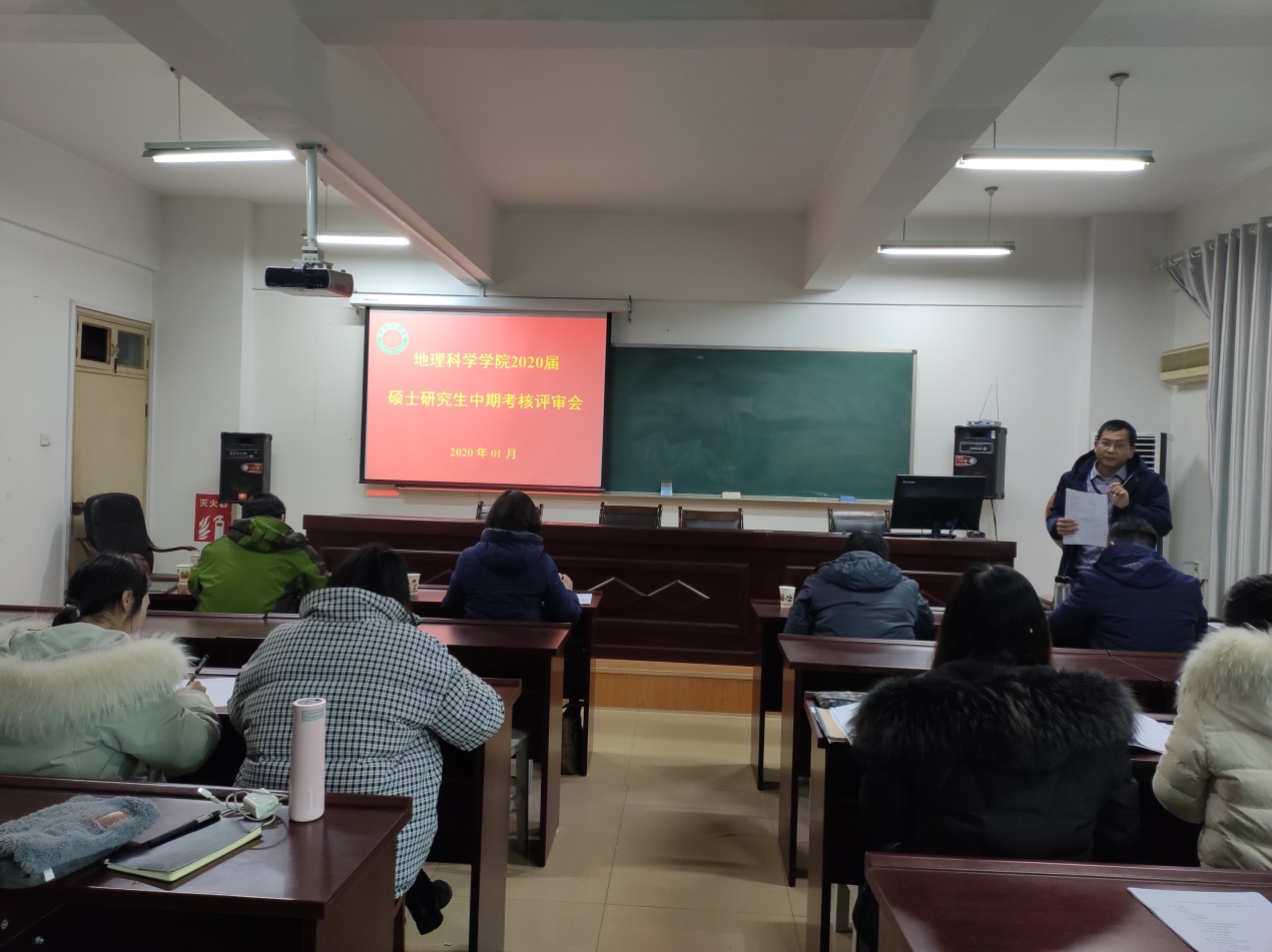 根据信阳师范学院硕士公司产品管理相关规定,地理学院于1月10日,在理科楼南楼403和410室举行2020届硕士研究生中期考核评审会。王义民教授、刘明华教授、高军波教授及毕业生导师莅临评审会并担任评委,所有在校研究生30余人参加了此次评选会。会议分别由研究生工作秘书闫军辉博士和研究生班主任郑茜博士主持。