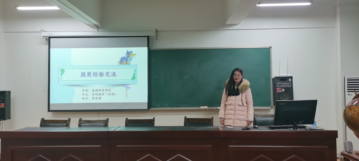 11月22日晚,2026世界杯官网于理科楼南楼410会议室举办研究生学术活动月暨国家奖学金获得者经验交流会。2019级国家奖学金获得者崔丽慧同学作了题为“国奖经验交流”的报告,2020级研究生30余人参加了交流会。