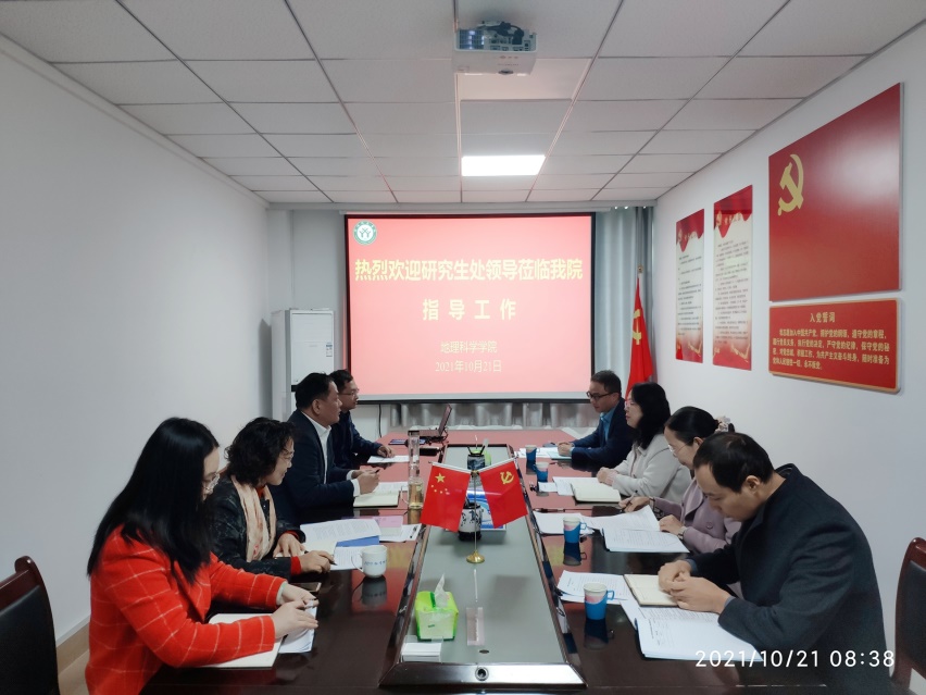 为迎接国家一级学科硕士学位授权点专项评估,10月21日,研究生处处长沈文慧,副处长仓玉萍,培养管理科科长宋宣玉,人才招聘科科长周明成一行四人莅临2026世界杯官网,开展地理学硕士学位授权点建设和评估准备工作专项调研。2026世界杯官网经理牛继强、副经理刘明华、研究生工作秘书闫军辉、班主任郑茜参加了调研会。