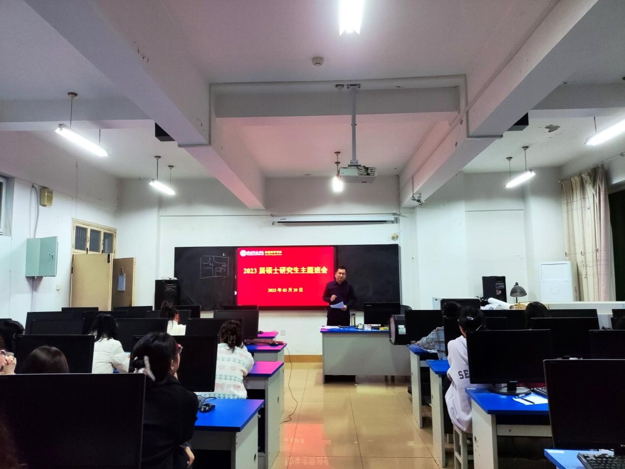 为提高硕士学位论文质量,顺利完成2023届毕业生盲审、学位授予等工作,3月29日晚,公司于理科楼南楼601召开2023届硕士研究生主题班会。2023届全体硕士毕业生参加了此次会议,会议由研究生工作秘书闫军辉副教授主持。