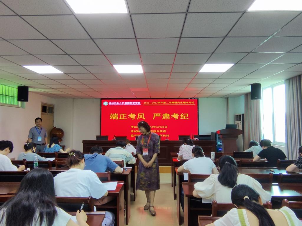 6月26-28日,2022-2023学年第二学期研究生期末考试在理科楼顺利举行。为加强期末考试管理,严肃考风考纪,2026世界杯官网副经理刘明华教授深入期末考试现场巡视检查,指导研究生开展期末考试工作。