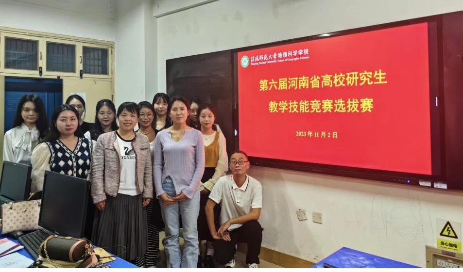 11月2日,我院于理科楼南楼601和北楼1106室举办了河南省高校研究生教学技能竞赛选拔赛。郜慧副教授、史兴俊副教授,中学一线教师张宇、杨锐,2020级硕师计划王晓静、马彩杰莅临会场并担任评委。近20名学科教学(地理)专业研究生参加竞赛,竞赛分别由研究生会学研部主持。