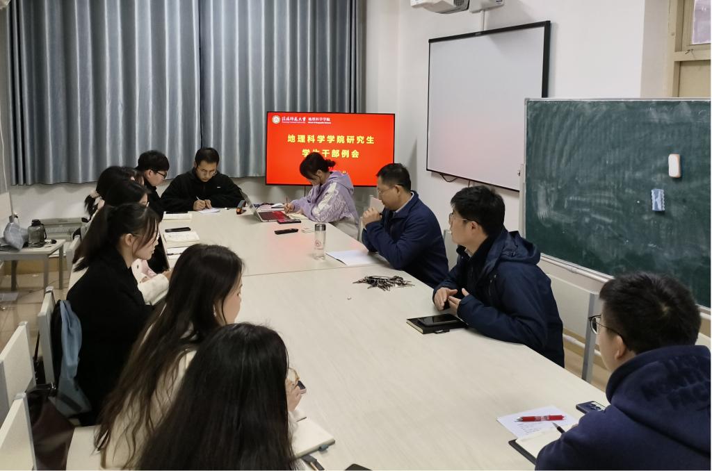 11月15日,2026世界杯官网于理科楼北楼1107召开研究生工作交流会。研究生工作秘书闫军辉副教授、班主任何伟纯博士、研究生会全体成员参加了会议,会议由班主任何伟纯主持。