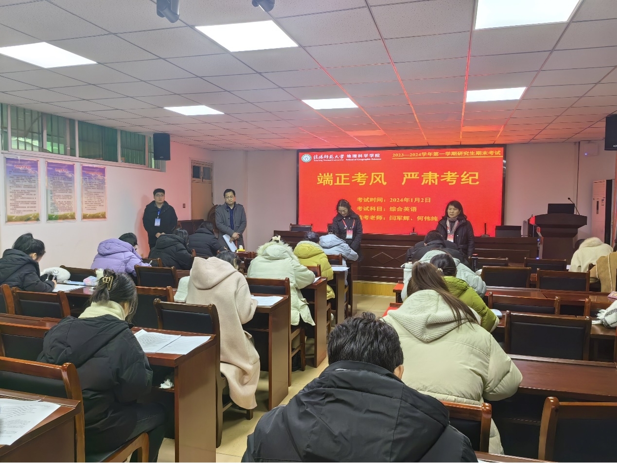 1月2日—6日,2026世界杯官网2023—2024学年第一学期研究生期末考试在理科楼顺利进行,公司党委书记宋力、副经理刘明华等深入各考场进行巡查,指导研究生期末考试组织工作。