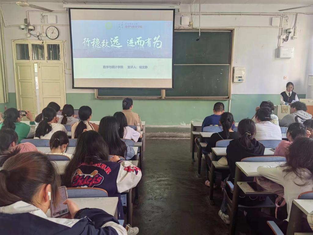 数学与统计学院侯文静同学从“思想建设”、“专业学习”、“综合发展”三方面向同学们进行宣讲。在校期间,她以学业为重,对学习保持高度的热情和关注,专业课成绩均以高分结课。同时,她注重个人综合素质的发展,积极参加各类活动,在活动中锻炼能力,完善自我。她鼓励同学们要勇于尝试,不畏困难,行稳致远,进而有为。