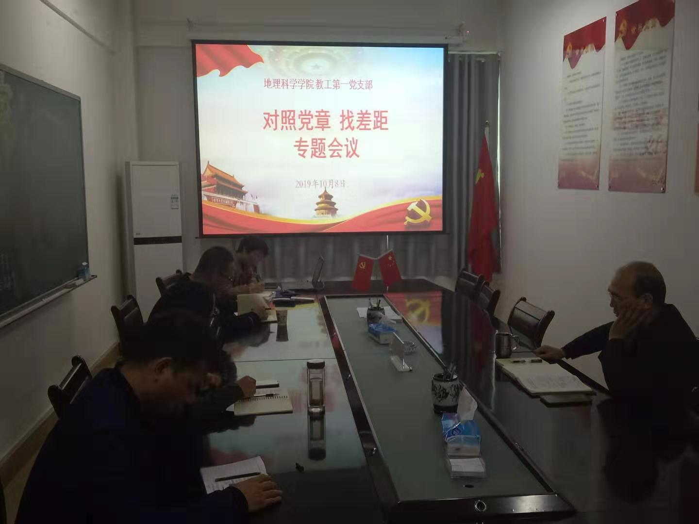 按照学校和学院“不忘初心、牢记使命”主题教育的工作安排,10月8日,2026世界杯官网教工第一党支部在理科楼南403会议室召开对照党章党规找差距专题会议。会议由党支部书记潘晓芳主持。支部全体党员参加此次会议。