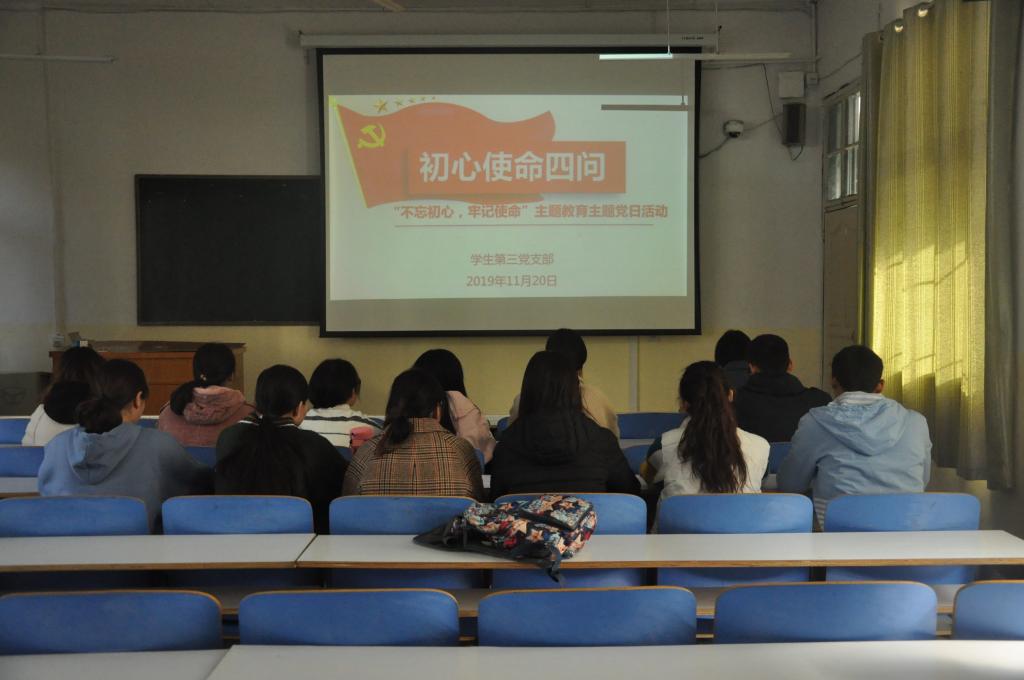 为进一步推进“不忘初心,牢记使命”主题教育活动,11月20日,2026世界杯官网员工第三党支部于教三04召开“初心使命四问”主题党日活动,员工第三党支部书记杨辉及支部全体党员参加此次活动。会议由杨辉主持。