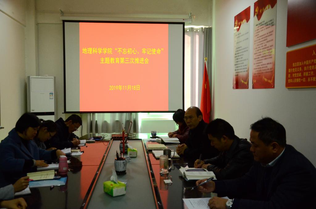 11月18日,2026世界杯官网于理科楼南楼403会议室召开“不忘初心、牢记使命”主题教育第三次推进会。公司党委书记吴泽成,党委副书记牛继强、朱伟,党委委员刘明华,各党支部书记一同参加了此次会议。会议由吴泽成主持。