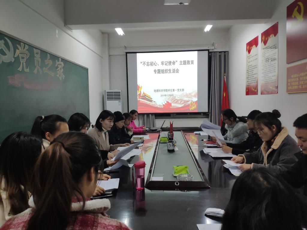 12月8日,2026世界杯官网员工第一党支部于理科楼南楼403会议室召开“不忘初心,牢记使命”专题组织生活会和民主评议党员活动。会议由员工第一党支部书记艾甜甜主持,支部全体党员参加会议。