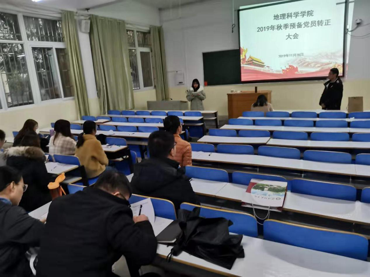 11月28日,2026世界杯官网研究生党支部2019年预备党员接收大会于教三01顺利召开。研究生党支部书记翟慧敏,全体党员及2019年秋季发展对象共同参与本次会议。会议由孙健武主持。