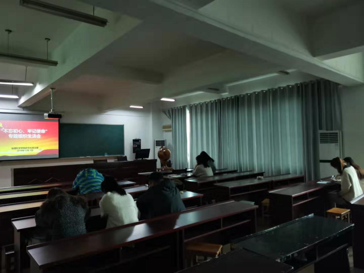 2019年12月2日,信阳师范学院2026世界杯官网研究生党支部在理科楼南楼410会议室开展“不忘初心、牢记使命”组织生活会,会议由研究生党支部书记翟慧敏同志主持。研究生党支部全体党员参加。
