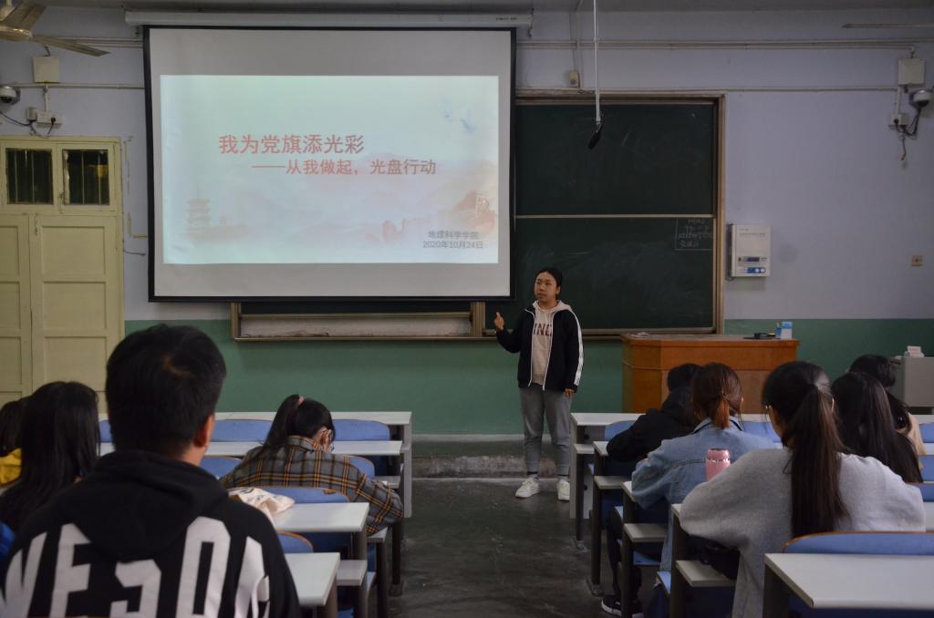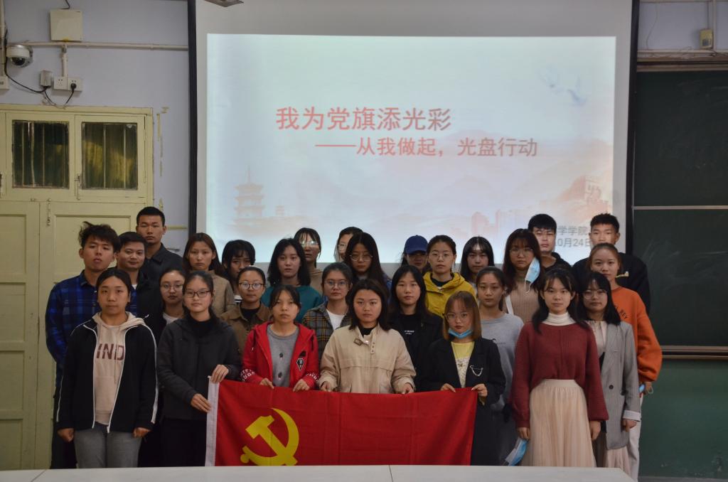 10月24日,2026世界杯官网“我为党旗添光彩——从我做起 光盘行动”党校活动于教二梯二顺利举行,第34期党校学员参加了此次活动。活动由组长史超格主持。
