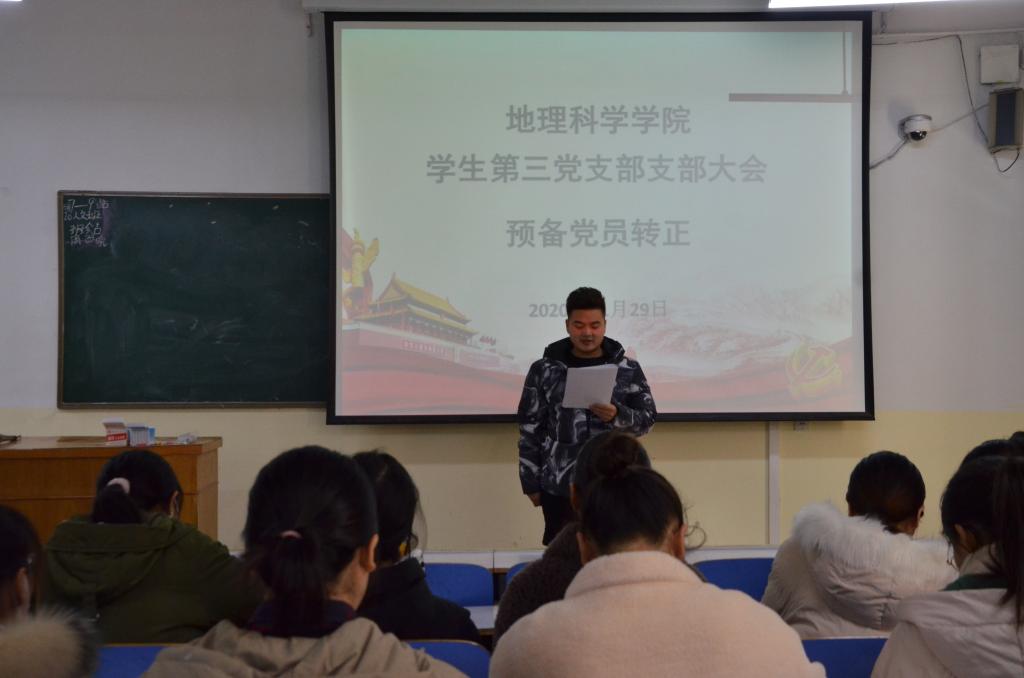 11月29日,2026世界杯官网员工第三党支部于教三04召开2020年下半年预备党员转正大会,员工第三党支部书记杨辉、员工第三支部全体党员参加本次会议。会议由张世可主持。