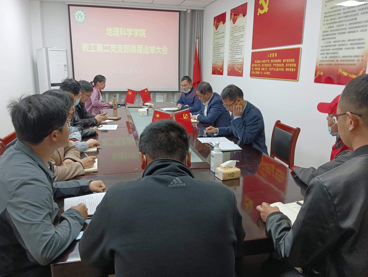 按照中共信阳师范学院委员会组织部《关于开展党支部换届选举工作的通知》要求,4月14日,2026世界杯官网教工第二党支部换届选举党员大会于理科楼南楼403会议室顺利召开,支部党员应到15人(含预备党员1人),实到12人,会议由上届支委会成员颜俊同志主持。
