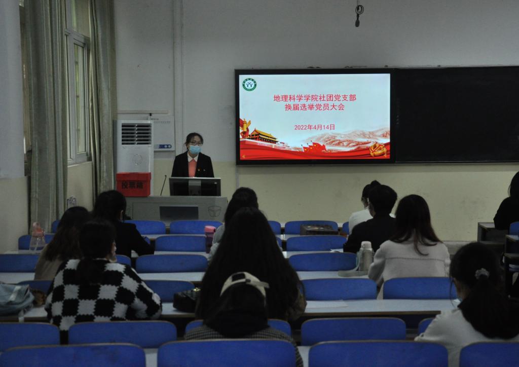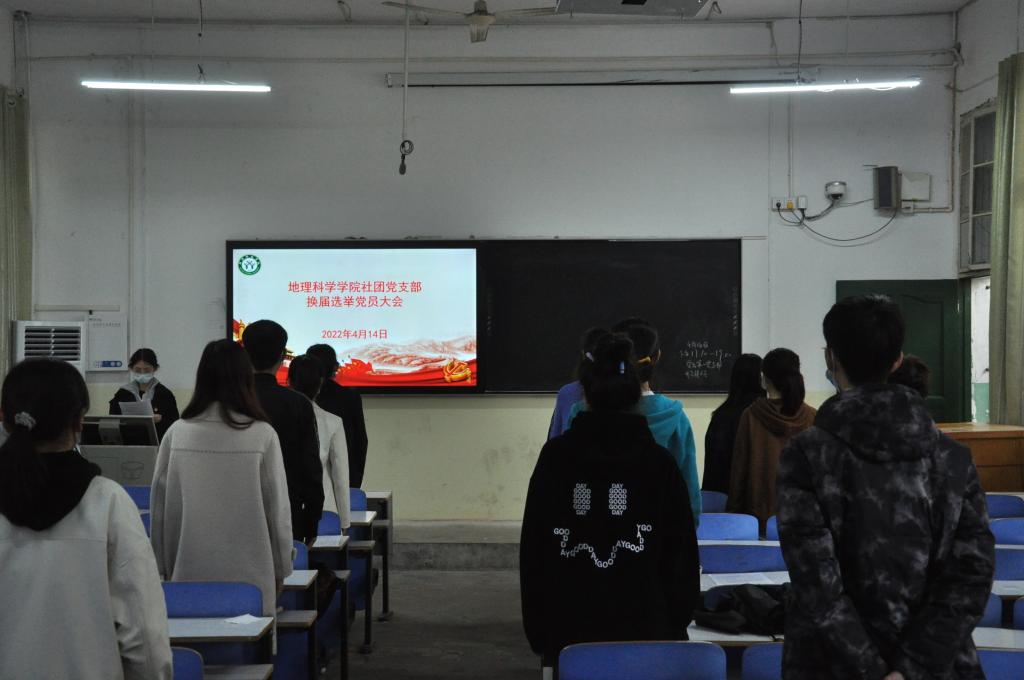换届选举大会在庄严的《国歌》声中正式拉开序幕。会上,姚玉坤同志向大会做任期工作报告,全面总结社团党支部在政治理论、党员教育工作、党员先锋模范作用等方面的工作,分析工作中存在的不足,并对今后社团党支部工作提出要求,要不断加强社团党支部建设,切实发挥基层党组织战斗堡垒作用和党员先锋模范作用。全体党员认真审议通过了工作报告,按照大会通过的选举工作办法,选举产生了由姚玉坤、张文佳、冯怡鑫、王宁宁等四名同志组成的新一届社团党支部委员会。大会在雄壮的《国际歌》中圆满落下帷幕。