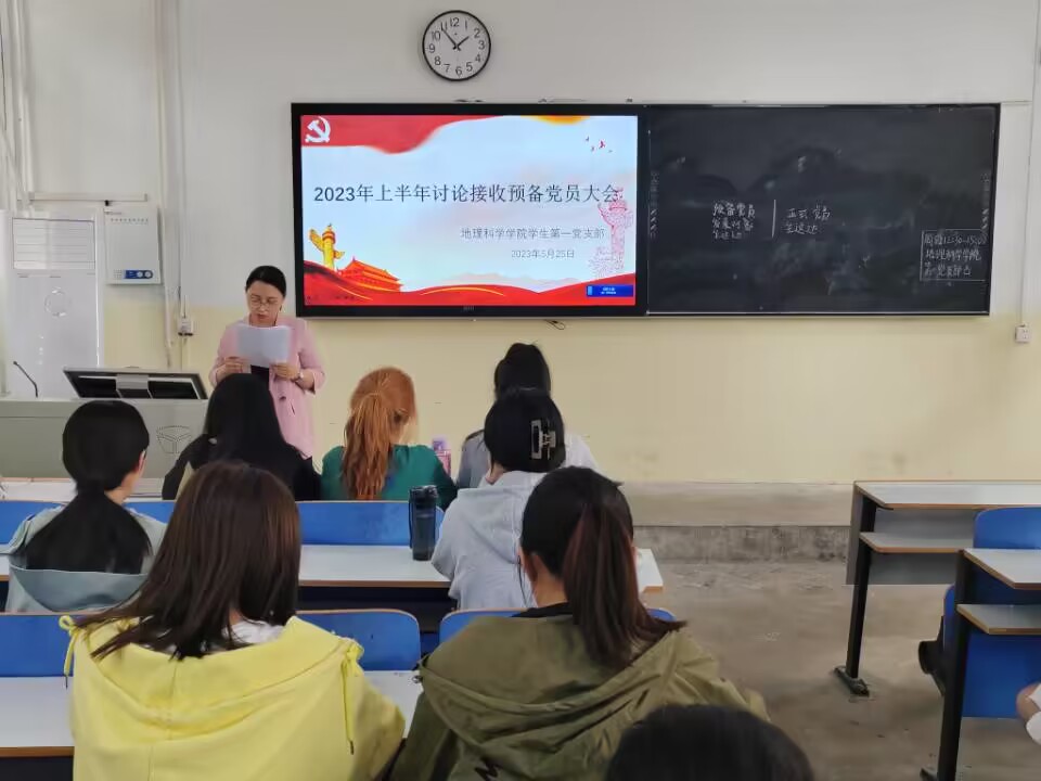 大会主要讨论于岱可,张一菡等七名同志能否接收为预备党员问题。会议伊始,艾甜甜对会议流程做主要简述并宣读了发展对象名单。接着,发展对象依次宣读了入党志愿书,汇报了自己的入党动机,介绍自己在作为发展对象期间的学习,各项工作以及生活情况,入党介绍人赵赛雅同志依次介绍了发展对象的表现情况,并对其能否入党表明意见。与会党员对于岱可等七名发展对象是否能够入党进行无记名投票表决。经投票表决,大会同意接收于岱可等七名发展对象成为预备党员。最后,艾甜甜发表重要讲话,他提出预备党员也要用党员标准严格要求自己,积极向党组织靠拢,密切联系群众,坚定信念,严格要求自己,积极参加党内各项活动,起到模范带头作用。