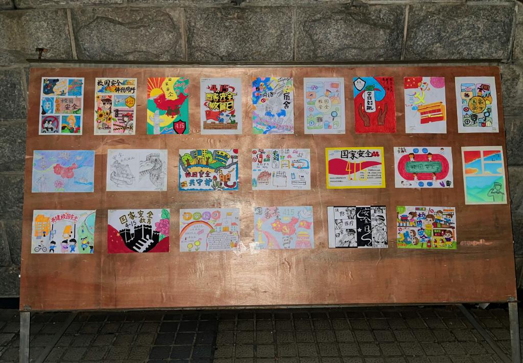 校园生活多姿多彩,同时也隐藏着一些安全隐患,我们需携手同行,共同守护校园安全,共建一个安全温馨的校园环境。同学们以校园安全为主题创作了各式各样的图画,有宣传火灾安全的,有呼吁注意车辆的,还有描写诈骗手段的。每一幅都体现了同学们对校园安全的关注与重视。通过将画作展示在展板上,同学们通过图画了解到了校园安全的重要性和必要性。