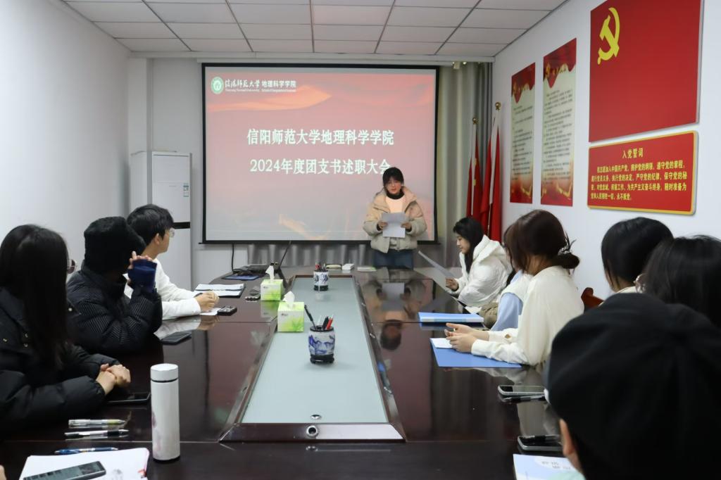 首先,会议在全体奏唱团歌中拉开序幕。接着,各班团支书采用PPT的形式,围绕本年度团工作开展情况、个人履职情况以及团支部工作情况等方面进行述职。展示各班级的思想工作、学习教育、精神文明建设以及团支部活动发挥的作用。最后,由时满星对本次大会做出总结,对各班团支书克服困难,完成团总支安排的任务表示肯定。同时对团支书工作中存在的问题提出意见和建议。强调团支书要在强化思想引领、注重能力提升等方面下功夫,不断地提高支部团员青年的政治思想觉悟。
