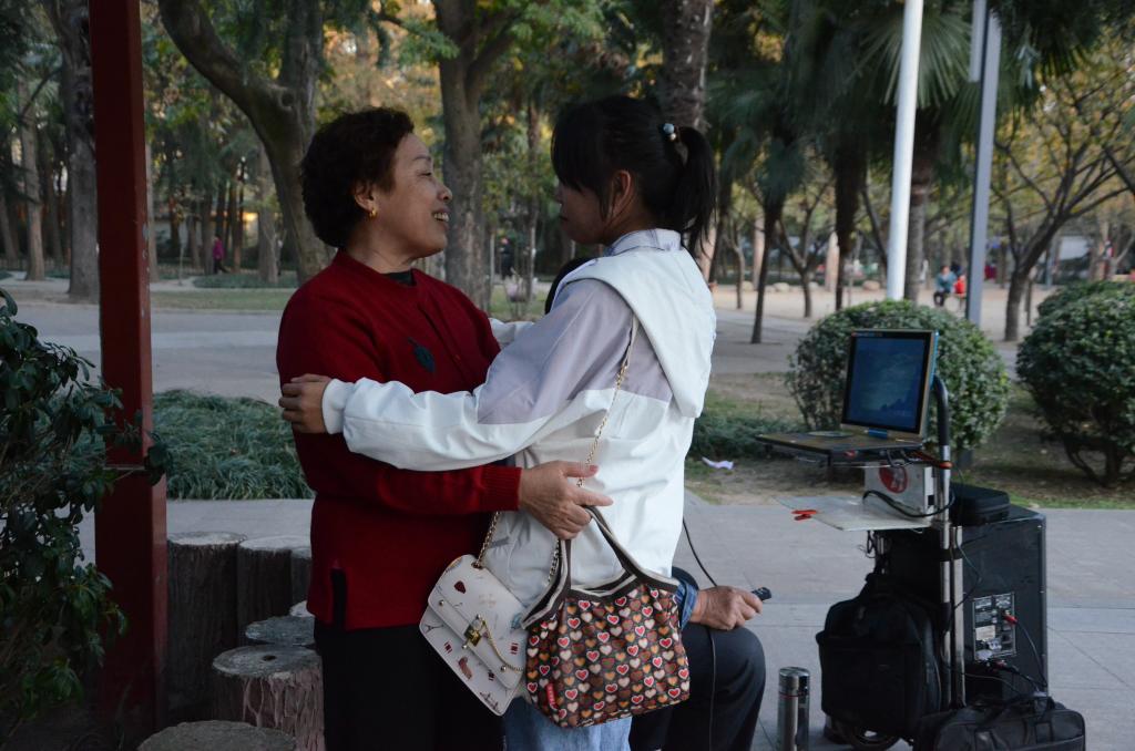 活动伊始,参与人员随机采访校内同学并于一棵树广场录制视频以表达对祖国七十华诞的祝福。随后,全体人员到达浉河公园,孟恩慧对活动流程与注意事项作简要介绍后,活动正式开始。她将活动成员分为两组,一队成员主要寻找路人协商拍摄他们对祖国成立70周年的祝福语,另一队成员随机选择路人向其表明身份并发出拥抱邀请,在征得对方同意后与之进行友好拥抱并赠送小红旗留作纪念。社团成员满怀激情寻找路人礼貌沟通,期间不免遭到部分路人拒绝,同学们毫不退缩,调整好心态继续努力,最终用真情打动了路人。