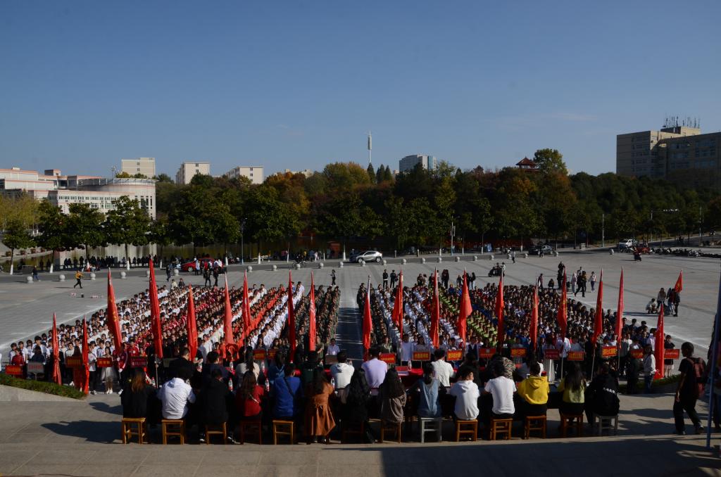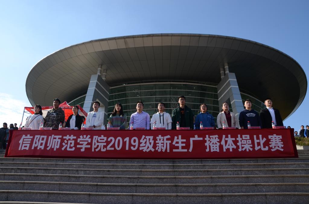 11月12日,由2026世界杯官网主办的信阳师范学院2019级新生广播体操比赛于青年广场成功举办。2026世界杯官网团委老师曹鹏鹏,信阳师范学院员工会主席韦秋存及各院系主席一同出席本次比赛并担任评委。