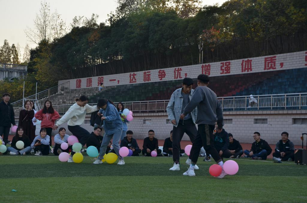 主持人简要介绍活动流程和内容后,活动正式开始。本次活动以部门为单位,共有传气球、猜歌名、顶气球、击鼓传花、踩气球五项比赛内容。在传气球比赛中,各部门派出相应人数进行传气球,同学们同时运用脑力和体力将气球快速传到终点。猜歌名比赛中,同学们需要根据所播放的歌曲猜歌名,率先回答正确者积一分,音乐前奏响起,参赛者争先抢答,说出歌名并哼唱几句,争取拿到积分。踩气球比赛中,各部门男女生相互配合,与其他部门pk,队友们身手敏捷,团结合作,场上热闹非凡。主持人计算比赛积分后对积分最少组进行惩罚,惩罚环节更是别出心裁,令人惊叹。员工会全体成员合影留念,至此,素质拓展活动顺利落下帷幕。