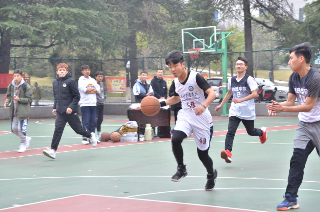 比赛开始前,双方队员进场进行赛前准备。前来观看比赛的同学为场上队员们加油喝彩,赛场气氛很快活跃起来。哨声响起,比赛正式开始,2019级率先夺得球权,抢先得分,并凭借队友间默契的配合连进几球,比分暂时领先。2017级不甘落后,奋起直追、步步紧逼,比分逐渐拉近,双方互不相让。2019级稳扎猛打,紧密配合,精彩的传球抢断赢得同学们阵阵喝彩。比赛进入白热化阶段,比赛场上战火燃烧,场下观众情绪激昂、奋力呐喊,呐喊声夹杂着掌声充斥着整个球场。赛场上选手们熟练地运球、传球,积极地拼抢、精准地投篮,赢得观众阵阵掌声。经过一个小时的激烈比拼,最终,2019级以72:62的比分赢得比赛。