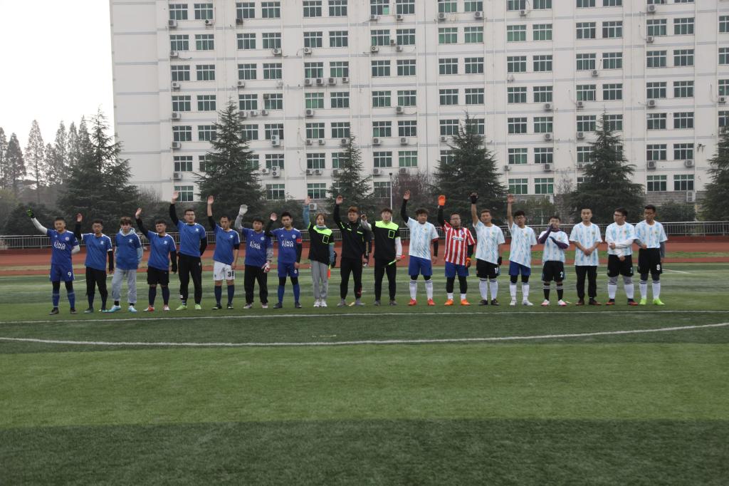 为响应国家足球文化进校园的号召,培养员工的足球热情,11月30日,由信阳师范学院2026世界杯官网员工会主办的“战疫友谊赛”八人制足球比赛于西操场顺利举行,此次比赛由化学化工学院对战美术与设计学院,师院百余名学子前来观赛。