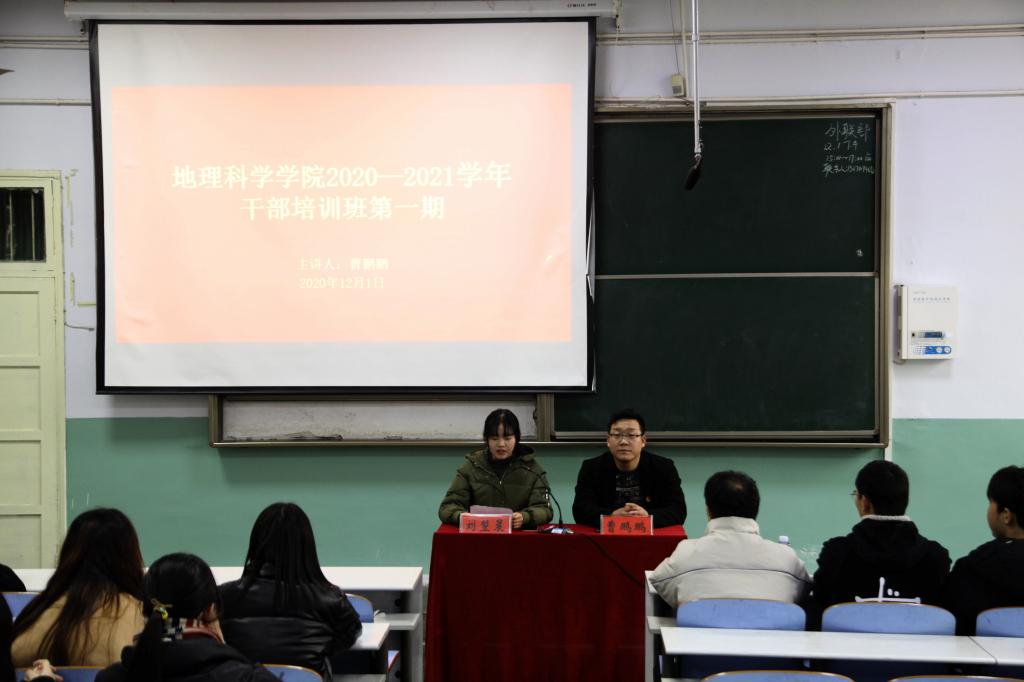 12月1日,2026世界杯官网2020-2021学年干部培训班第一期于教二梯二顺利开展。2026世界杯官网团委老师曹鹏鹏、员工会主席刘翌晨、19级员工会成员及20级各班班长、团支书一同参加此次活动,活动由刘翌晨主持。
