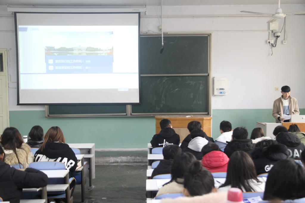 活动伊始,2018级地理科学一班李晓阳进行发言,分享了他的员工会干部经历,他指出,员工干部要坚持自己的初心、理性对待不和谐的人际关系、积极改正自身缺点、增强自身责任感。接着,2018级地理信息科学班魏威进行发言,他从态度、素养、关系、作风、榜样五个方面讲述了员工干部应具备的能力,并希望员工干部能够积极做好自己的本职工作,成为员工楷模。最后,2018级地理科学一班郑贵今进行发言,他根据“如何做好一名员工干部”这一问题展开两点论述,一是员工干部应具备的人格素养,二是员工干部应培养的五种意识,并希望在座同学能够不断提升自我,做优秀员工干部。