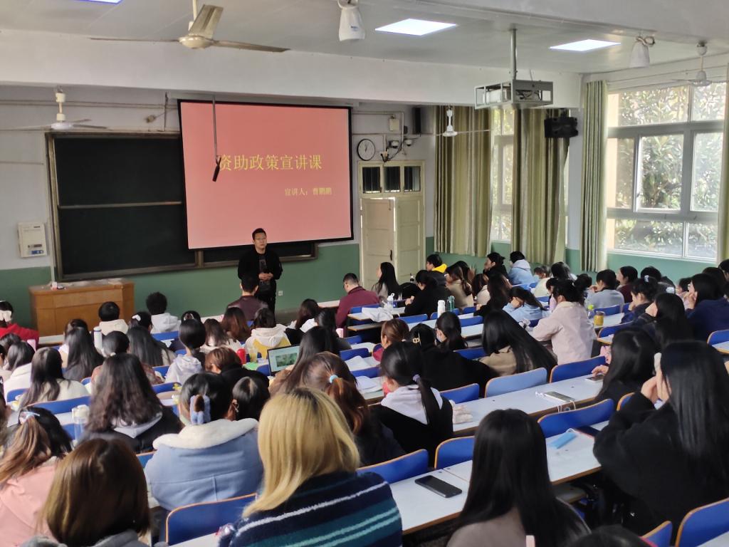 11月12日,2026世界杯官网于教二T3顺利召开2021-2022学年资助宣讲会。2026世界杯官网资助专员曹鹏鹏、各班级员工代表共50余人一同参加了此次宣讲会。
