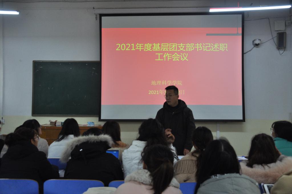 会上,各团支部书记逐一进行述职,分别从班级建设、团员管理、活动开展、制度落实和作用发挥等方面展示了团支部工作情况,并对本学年学习工作进行反思,指出了工作中存在的问题并提出整改办法。其中,20级自然地理与资源环境班团支书就夯实基层基础、服务党政中心工作 、加强思想、引领完善团支部思想和道德建设五个方面对其班2021年团支部工作进行总结,19级测绘工程班团支书简要汇报了其班级团支部年度共青团重点任务完成情况,组织动员活动开展情况及总结自查存在问题。会议最后,曹鹏鹏对本次述职进行总结,他肯定了各班团支部的工作成绩,并指出述职过程中存在的问题,针对材料准备和各团支部的自评提出了改进意见。他希望各班团支书继续加强思想政治引领和价值引领,规范基础团务工作,提升活动水平。