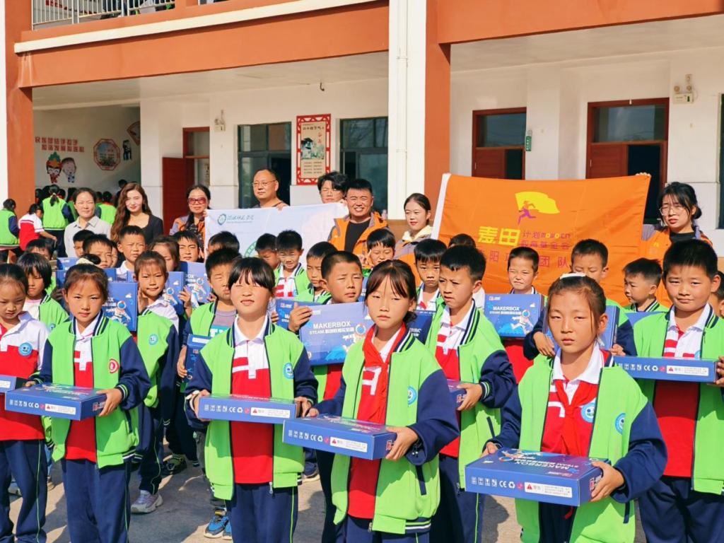 11月2日,公司啄木鸟心益社高睿欣、郭翔龙、李淳协助麦田教育基金会信阳项目团队前往信阳市平桥区肖店乡中心小学举行麦田教育基金会科学创新教育项目开课仪式。