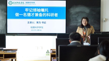 11月23日,公司党委书记宋力于理科楼南楼603作了题为“牢记领袖嘱托,做一名德才兼备的科研者”的学术报告。公司副经理刘明华教授、研究生工作秘书闫军辉副教授、研究生班主任郑茜博士及全体研究生共80余人参加了报告会。报告会由刘明华教授和闫军辉副教授主持。