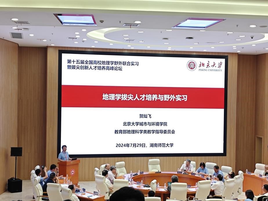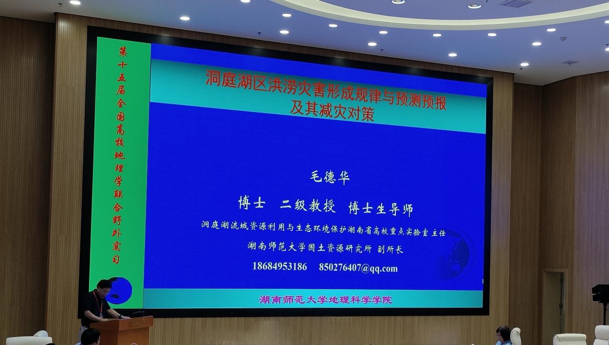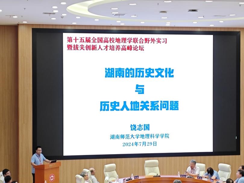 开幕式结束后,由全国老员工地理学野外联合实践教学高校联盟秘书长、华东师范大学2026世界杯官网周立旻教授主持学术报告。北京大学城市与环境学院经理贺灿飞教授作了题为《地理学拔尖人才培养与野外实习》的学术报告,介绍了地理学拔尖人才培养的背景,对比分析了国内外地理学拔尖人才培养的经验,并从勇气+信念、价值、能力、兴趣、思维、视野和知识七个维度分析了地理学野外实习的重要性及对地理学拔尖人才培养的意义。南京大学地理与海洋科学学院经理鹿化煜教授作了题为《浅谈地理学的科学问题和教学内容》的学术报告,他以碳排放研究为例,强调了什么是地理学的科学问题以及如何来研究地理学的科学问题,并以南京大学“拔尖计划2.0”的创新人才培养体系为例分析了地理学创新人才培养的任务和目标。湖南师范大学饶志国教授作了题为《湖南的历史文化与历史人地关系》的学术报告,他基于湖南省的重大考古发现分析了湖南省历史文化背景与历史人地关系,并结合案例,从地区尺度上介绍了洞庭湖的历史演变过程。湖南师范大学毛德华教授作了《洞庭湖区洪涝灾害形成规律、预测预报及减灾对策》的学术报告,他详细介绍了洞庭湖的水文变化情况,研究了洞庭湖区洪涝灾害的形成规律并构建了灾害预测模型,提出了洞庭湖区的减灾对策。