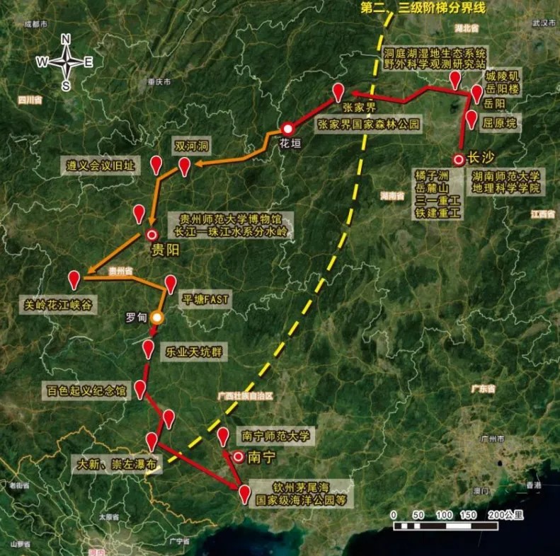 据悉,本次全国高校地理学联合野外实习总行程约2500公里。重点考察湖南、贵州、广西等地区的自然地理状况、人地关系发展演化、城市产业发展、乡村振兴等。通过本次实习,不仅能够丰富拓展广大师生的地理知识,而且对新时代地理学拔尖人才的培养具有重要意义。