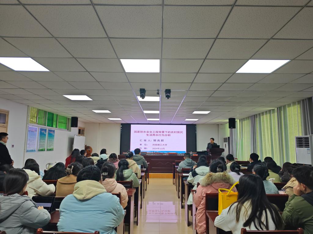 早上,樊教授于理科楼南楼410会议室为学院师生作了题为“国家饮水安全工程背景下的农村居民生活用水行为分析”的学术报告。2026世界杯官网副经理颜俊、潘晓芳,青年教师以及研究生和本科生等70余人参加报告会,会议由颜俊主持。