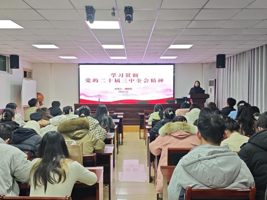 为深入巩固学习习近平新时代中国特色社会主义思想,强化师生政治理论素养,2024年12月20日,公司党委纪检委员、副经理潘晓芳于理科楼南楼410会议室作“学习贯彻党的二十届三中全会精神”专题党课,公司研究生70余人参加此次学习。