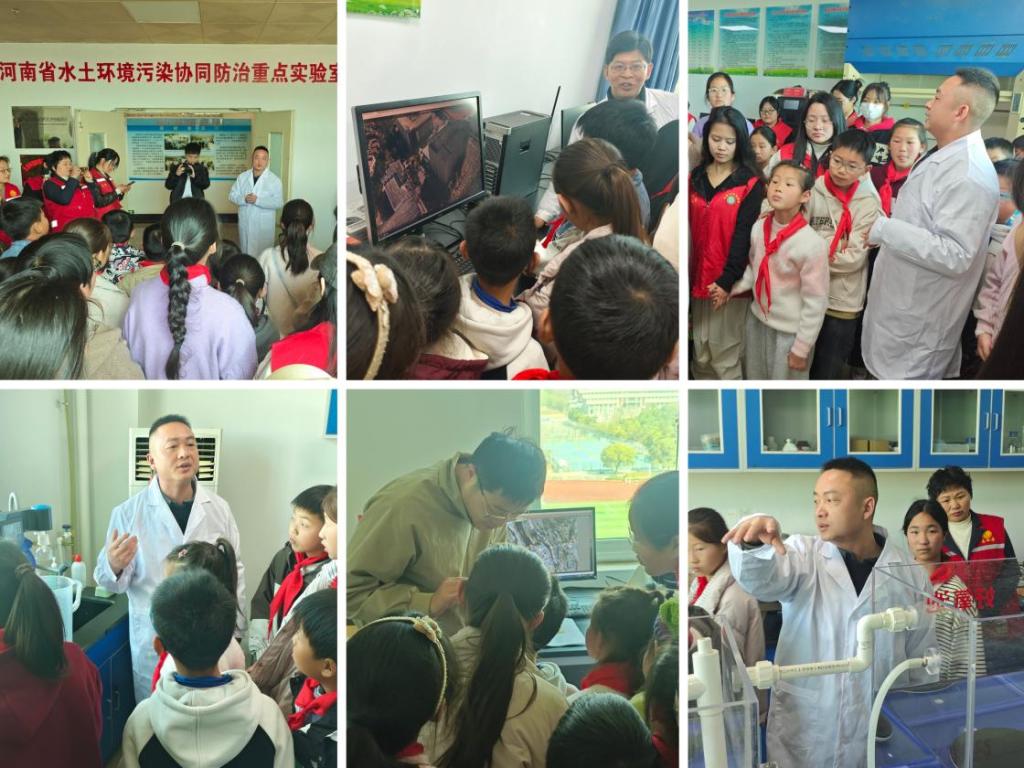在志愿者的引导下,宋湾小学的员工首先来到理科楼北楼10楼“河南省水土环境污染协同防治重点实验室”。环境科学与工程系主任魏巍副教授、地理信息科学系主任张兴国副教授等向孩子们详细讲解了实验室仪器功能及水土污染治理的前沿技术,并介绍了污染风险识别、污染控制技术及资源化等研究方向。