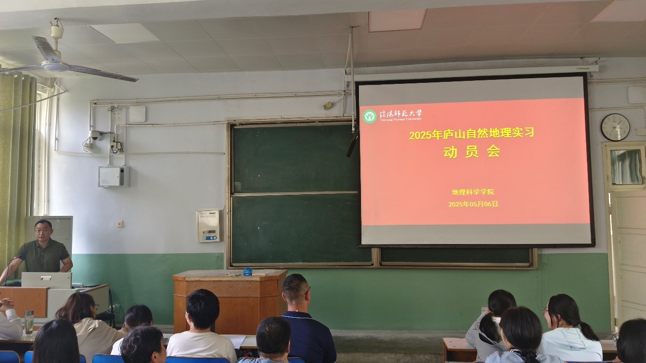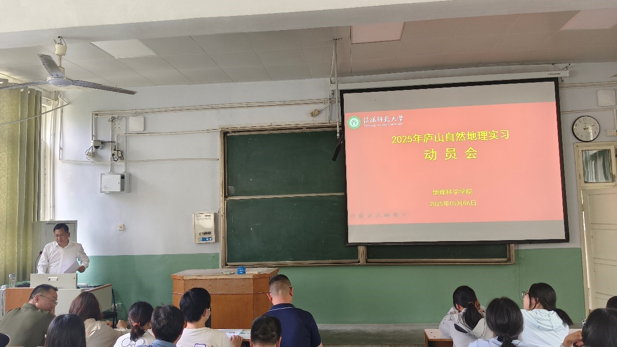 5月6日,2025年庐山自然地理实习动员会在教二梯三教室举行。党委副书记韩勇,副经理闫军辉,实习实训中心主任范宝伟,实习班级班主任,实习教师代表及2023级地理科学专业员工参加了动员会,会议由李宗盟主持。