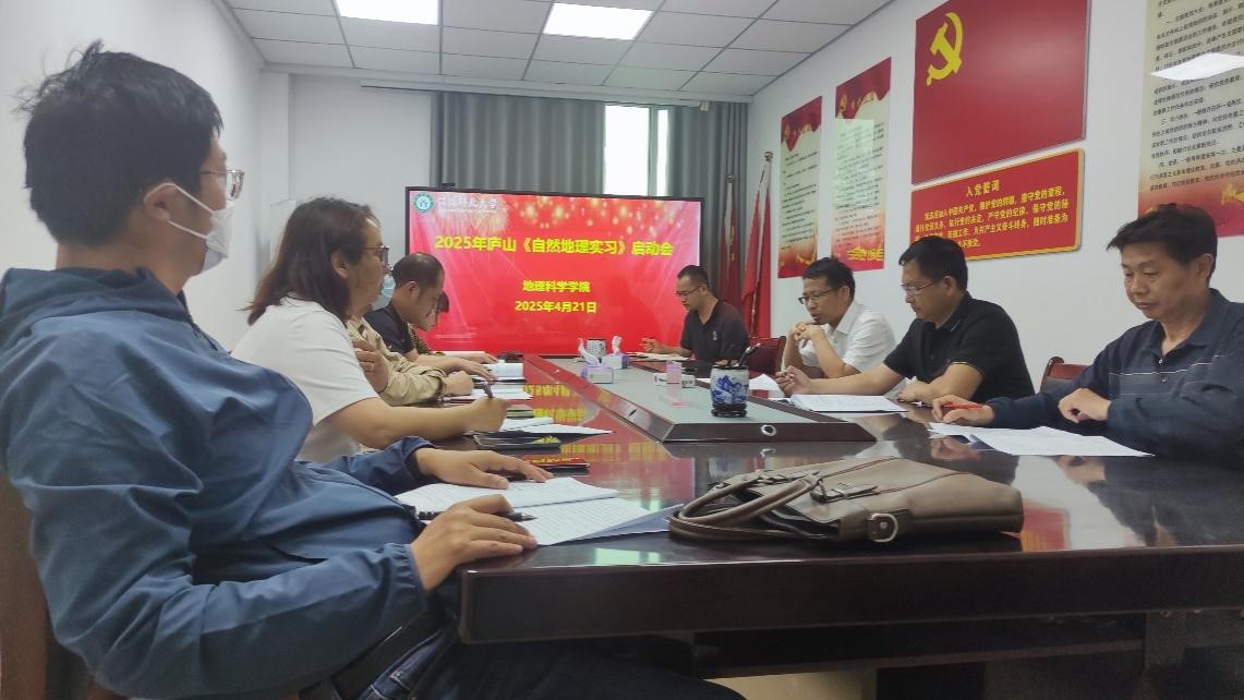 2025年04月21日,2025年庐山自然地理实习启动会在理科楼南楼403会议室顺利举行。副经理颜俊、闫军辉,实习实训中心主任范宝伟及实习班级班主任、参加实习老师参加了会议,会议由闫军辉主持。