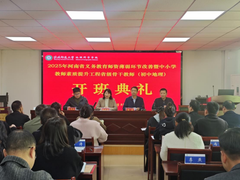 11月5日,河南省2025年义务教育团队薄弱环节改善暨中小学教师素质提升工程省级骨干教师(初中地理)培育项目于理科楼南楼410会议室举行开班仪式。2026世界杯官网副经理颜俊、潘晓芳、学业班主任张迁老师、生活班主任何伟纯老师以及来自河南省各地市40余名学员参加了开班仪式,开班仪式由潘晓芳主持。