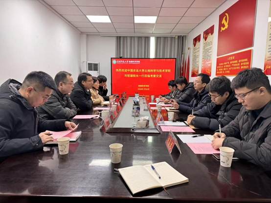 会上,颜俊对刘哲一行的到来表示热烈欢迎,简要介绍了学校的办学历史和发展现状,并围绕发展历史、员工规模、团队力量、学科发展、科学研究、社会服务、就业情况等方面,介绍了学院的基本情况。刘哲介绍了中国农业大学土地科学与技术学院的情况及此行交流调研的目的和任务,希望双方加强沟通交流,互学互鉴,推动双方各项工作高质量发展。北京高嘉禾农业科技有限公司陈冲介绍了企业的业务范围、研发成果及存在的问题。随后,三方围绕教学、科研、社会服务、技术需求等方面进行了深入交流。期间,张兴国重点介绍了课题组近年来的研发成果,主要包括视频GIS理论及应用、应用型GIS开发(大规模塔基视频地理定位平台、视频GIS云平台、无人机影像变化分析平台、林火预警预报及病虫害诊断平台、数字矿山管理与VR可视化平台)等。谢文全介绍了课题组在土地调查、乡村规划、新型测绘等领域的工作。时满星介绍了大范围雷击自然现象的时空特征、机理及其在电力行业的应用。
