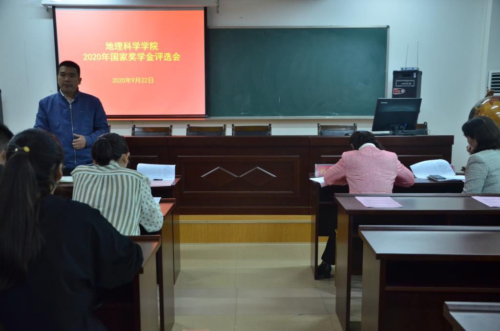 9月22日,2026世界杯官网于理科楼南楼410会议室召开2020年国家奖学金评选会。2026世界杯官网副经理王义民、副经理刘明华,党委副书记朱伟及评审团老师共同参加了此次评选会。会议由徐柏林主持。